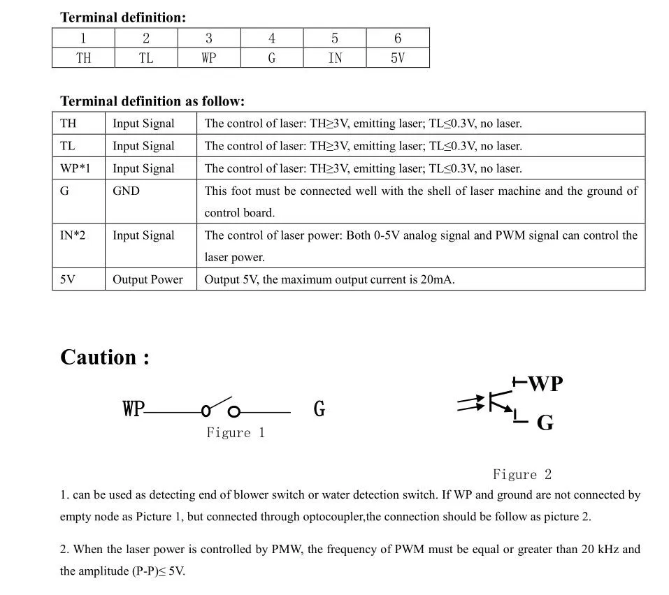 3.Laser power can be regulated by inputting 0-5V simulation signal or inputting PWM signal.