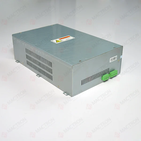 Mactron Brand High Quality Power Supply Laser Co2 100W belongs to high frequency design, adopt high quality IC parts for main parts to keep high performance and duration. 100 W laser power supplies can be used to 100W – 130W CO2 laser tube for kinds of industrial laser cutting system.