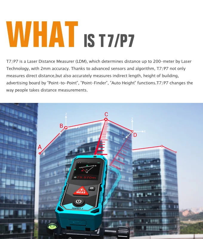 T7 40M 60M 80M 100M Bluetooth Laser Rangefinder with Rotary Touch Screen Laser Meter Point Finder
