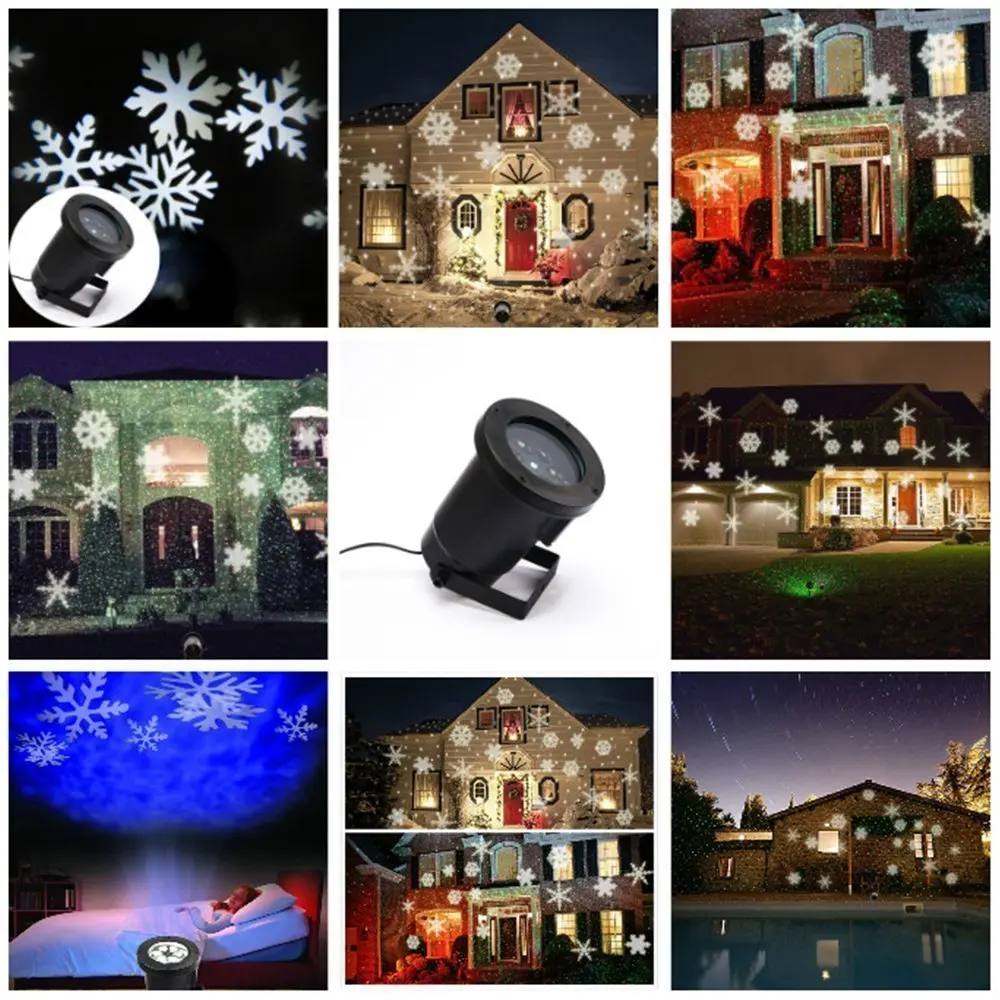 ●7-9 white large different-shaped snowflakes move automatically. Make snowflakes moving all over the side or front of your home. The snowflakes are very clear and bright.