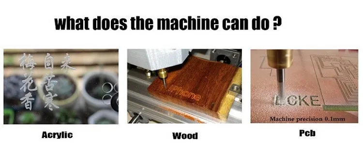 This machine can engrave wood, plastic, acrylic, PCB copper-clad plate, soft metal such as aluminum and copper.
